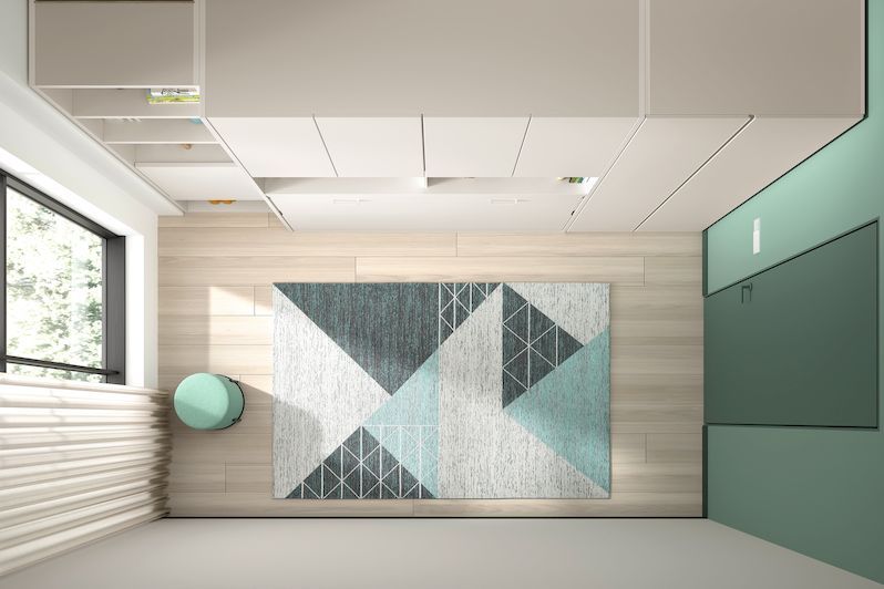 Diseño 3D para habitaciones juveniles, decoración, acabados con colores y texturas reales.